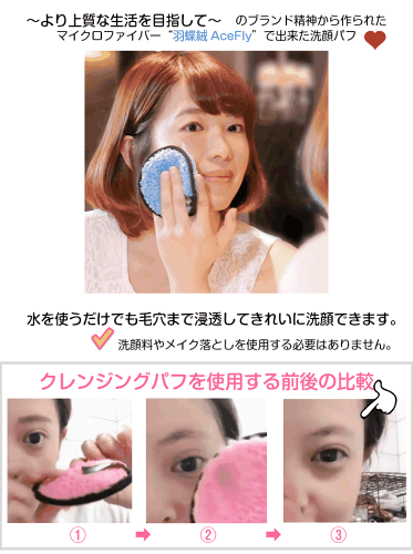 AceFlyクレンジングパフとは________新しい洗顔とメイク落とし素材 “羽蝶絨AceFly” で出来た洗顔パフです。