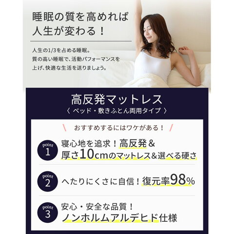 適度な硬さで身体をしっかり支える、高反発マットレスです。