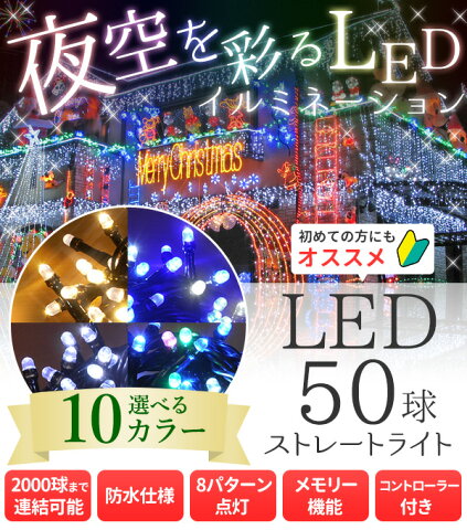 クリスマスツリー ライト イルミネーション 屋外 LED 50球 コントローラー付き 8パターン点灯 クリスマスツリー ストレート 防雨 イルミネーションライト クリスマス 屋内 1個のみ送料無料