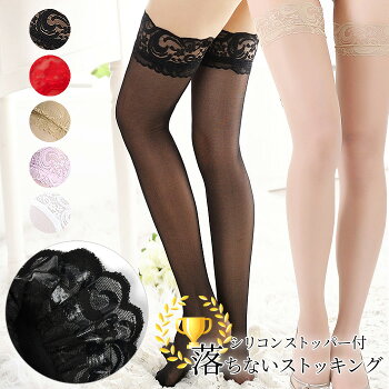 ずれ落ちない ガーターストッキング ガーター セクシー ランジェリー セクシー ストッキング 黒 膝上 もも丈 光沢 レース ニーハイストッキング オーバーニーストッキング シリコンストッパー付 セクシー下着 通販 エロい ベージュ ピンク パープル ブラック 送料無料