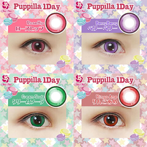 製品仕様 販売名アシストシュシュ パピーラワンデー 商品区分1日使い捨て・視力補正用色付コンタクトレンズ カラーパインキャンディ-/ブルーハワイ/ベリーベリー/ローズヒップ/イチゴミルク/チョコミント/クリームソーダ/りんごあめ/カスタードプリン/黒ゴマアイス/流星ゼリー/マロウブルージャム/キウイパルフェ/ソルティムース/オランジェット/ピスタチオクッキー/カプチーノ/チェリーコーラ 含水率38.5% 枚数・箱数6枚入り/1箱 レンズ度数(POWER)±0.00 -1.00〜−8.00(-0.50Dstep) DIA14.5mm ベースカーブ(BC)8.60mm 医療機器承認番号22700BZX00203000 販売元株式会社インタービア 【お届け情報】 平日12時までのご注文で1〜3営業日発送 木曜日12時以降・週末(土日)ご注文の場合、土曜日〜水曜日発送となります。