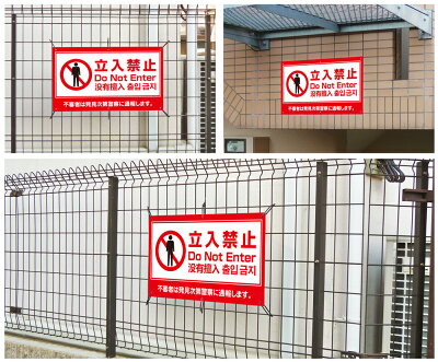 送料無料 立入禁止 Do Not Enter H35×W60cm / 立入禁止 立ち入り禁止 看板 プレート 標識 通報 私有地 / 日本語 英語 中国語 韓国語 to-red4